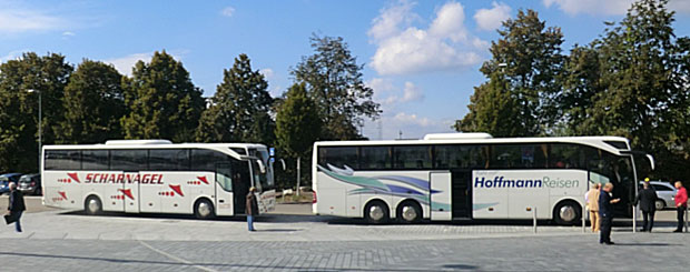 ドイツのバスはとにかく大きい。マンハイムで見かけた右のバスは、何と車輪が3軸の長大タイプで、お客様がたくさん乗れるうえ、視界も高くて人気です